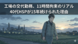 美容師時代は「なぜこうするのか」を教えてもらえる環境でした。でも工場では「とにかくやれ」の一言で終わることが多かった。HSPの私には、理由を理解してから動きたいという気質があるので、この文化のギャップは特にきつく感じました。